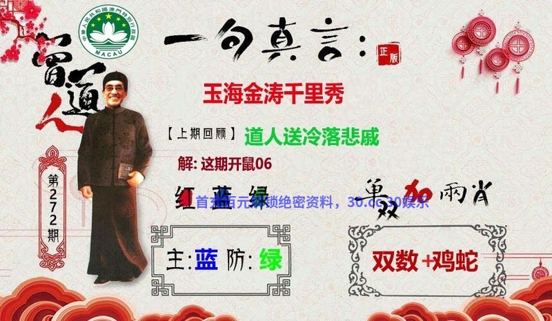 271期【解一句真言】:道人送冷落悲戚,冷落悲戚,解凶丑生肖虎牛狗鼠猪猴